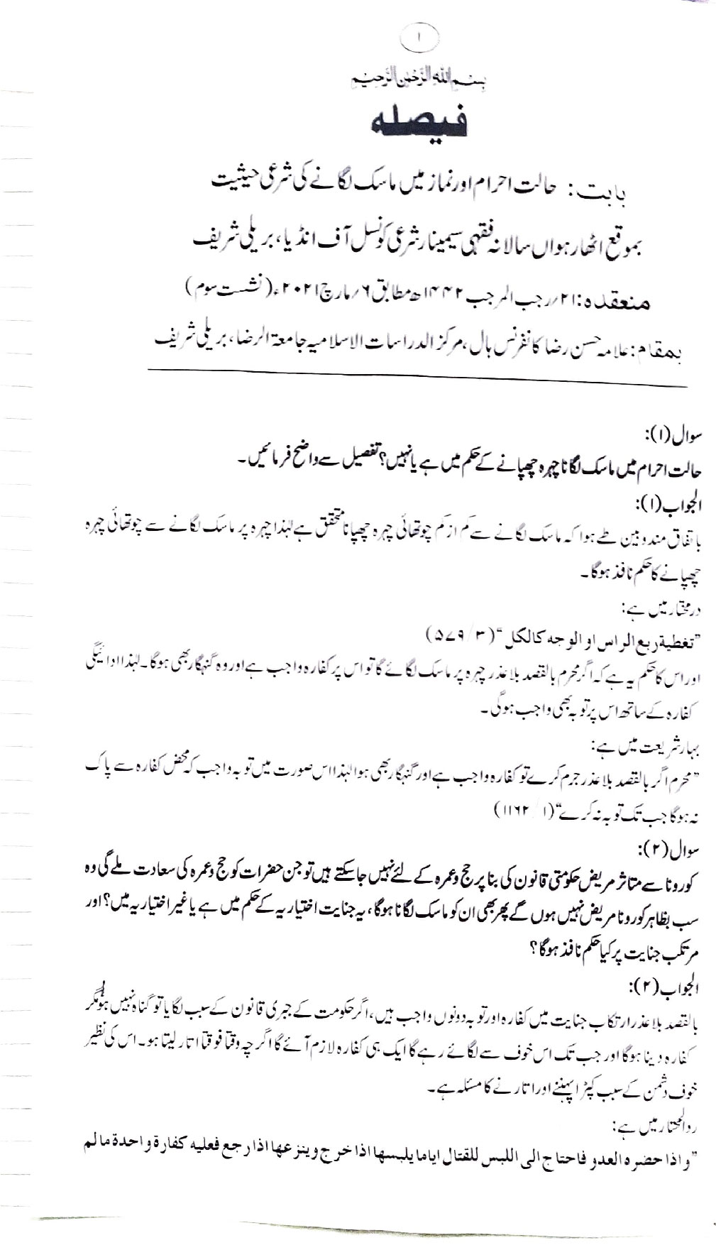 بِسْمِ اللّٰہِ الرَّحْمٰنِ الرَّحِیْم